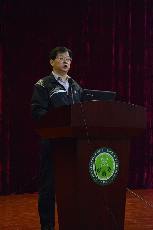 电控学院院长付老师致欢迎辞,并对新生提出一些希望,他希望新生可以学会把读书、思考、实践有效结合起来的同时做到从被动学习向主动学习、研究性学习的转变,从而提高自身综合素质和就业竞争力,立志成为具有道德理想、有文化、有纪律的西科人。