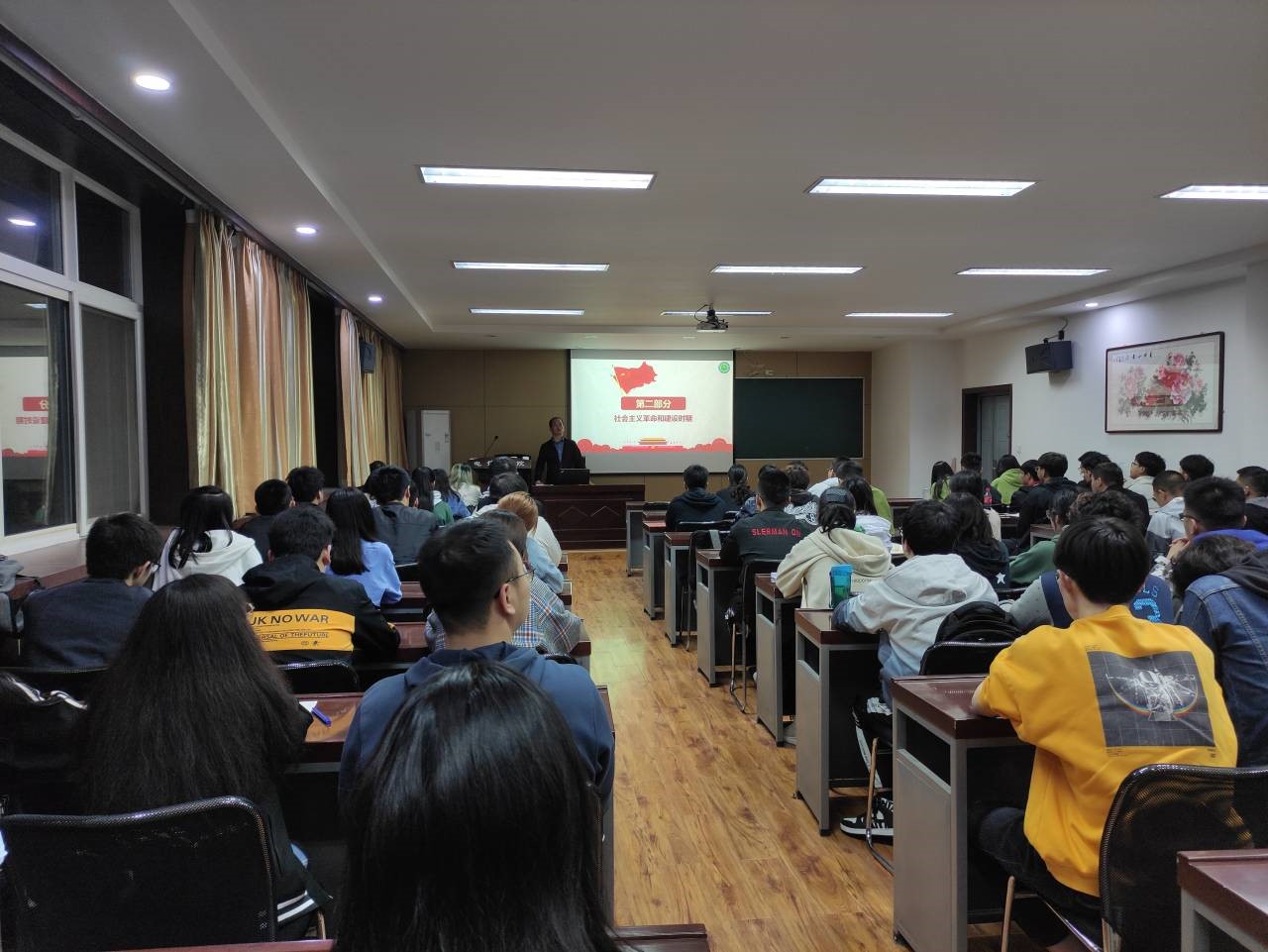 其次,王老师从学生实际出发,和大家探讨了考研的问题。他用几十年的工作经验、人生阅历,在课上游刃有余得诠释出了各个观点,同时积极与学生们进行课堂互动,风趣幽默的发言让同学受益匪浅。王老师甚至提出了“考研学习团队”的超前想法,他对于此观点的演讲内容充实而深刻,极具思想性。在课上王老师鞭策大学生努力学习奋斗,增强大学生的爱国热情和振兴祖国的责任感和使命感,这对学生们有重大的教育意义,他的一言一行,对一个学生党员的发展都起到了无可比拟的导向作用。