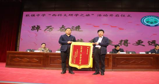 2021年4月29日(星期四)上午9:00,由高陵区教育总督学宋小军带队的耿镇中学 “西科大研学之旅”活动,一行五十余人来到beat365英国官方网站,参加此次研学活动的还有耿镇中学校长马昭、耿镇中心小学校长刘伟。