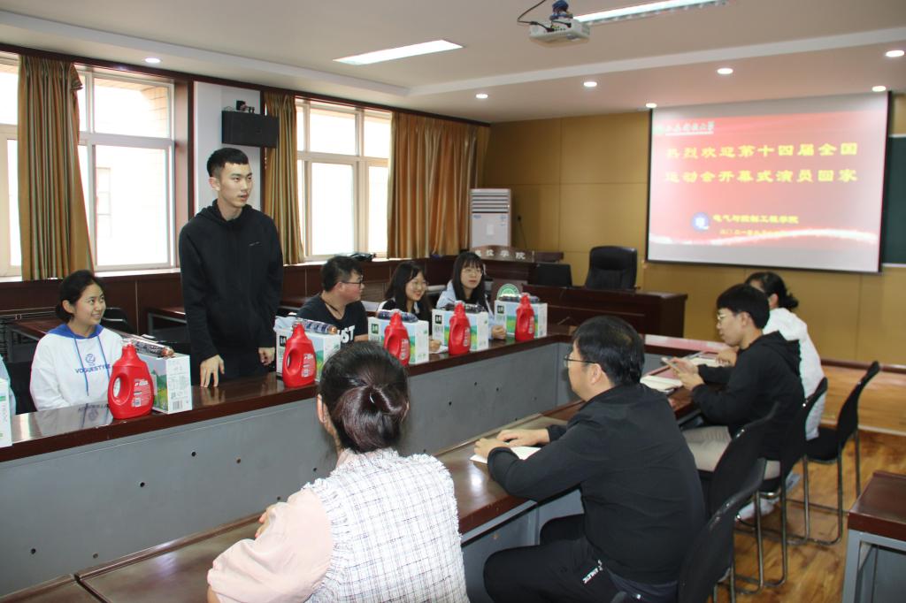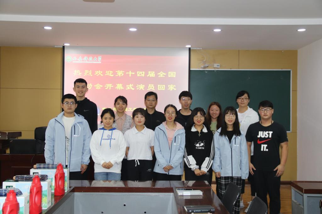 第十四届全国运动会于2021年9月15日晚完美开幕,开幕式上恢弘壮丽的表演给大家留下了深刻的印象,这离不开每一位演职人员的付出与努力。电控学院参演人员16日15:00安全返校。自6月16日开始排练以来,8位演员放弃休假时间,克服困难,发扬无私奉献精神,以高度的责任心出色完成了任务,各项训练成效得到组委会的高度肯定,在全体参训队伍中树立了良好形象。