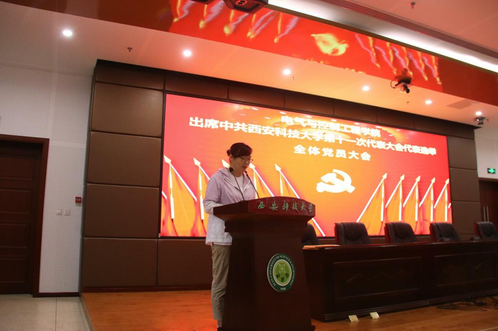 2021年9月23日下午,电控学院在骊山校园煤炭科技大楼二楼报告厅召开了出席中共beat365英国官方网站第十一次代表大会代表选举全体党员大会,电控学院全体党员共计147人参加本次会议,会议由电控学院党委副书记丁铂主持。