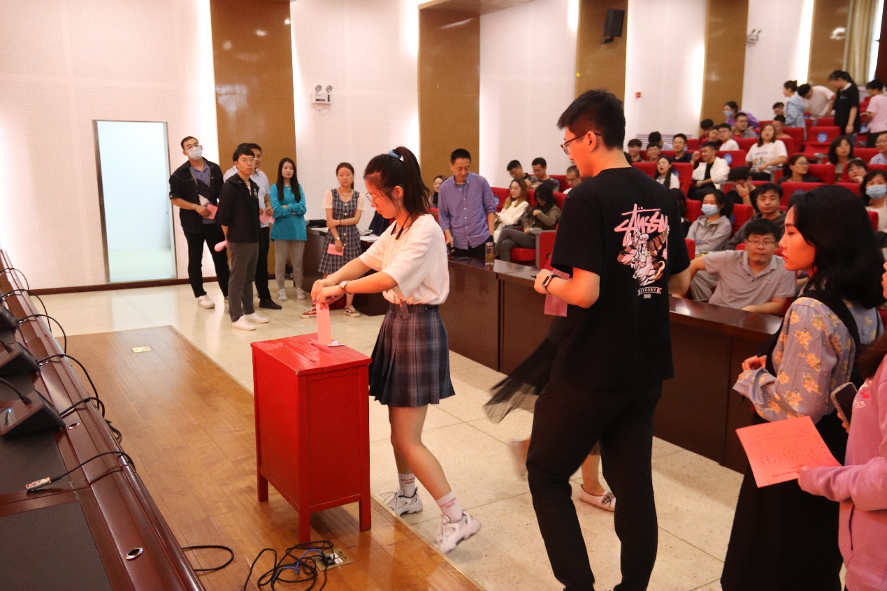 随后,在总监票人王健的主持下,会议以无计名投票和差额选举的方式,选举出出席学校第十一次代表大会代表9名。