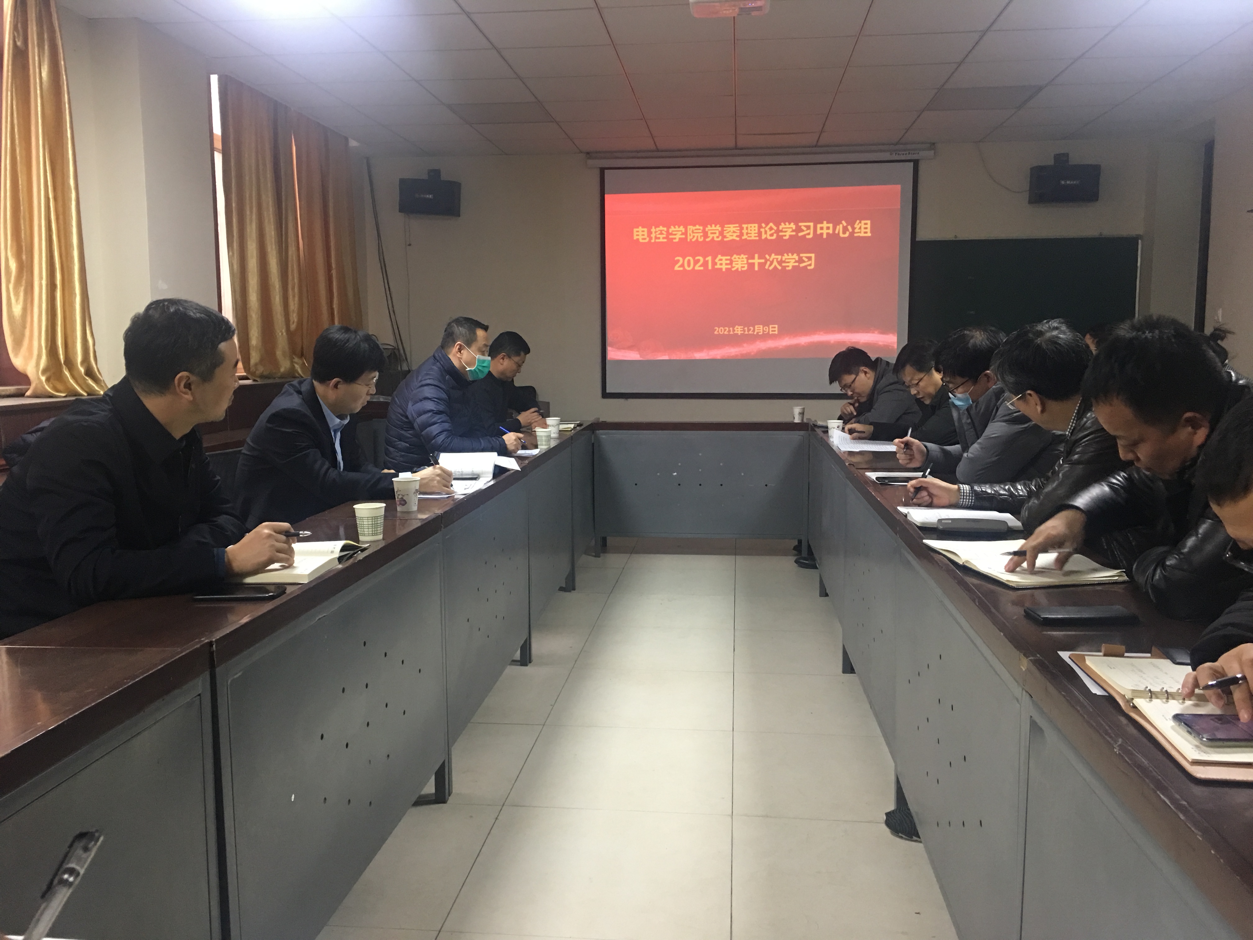12月9日下午,电控学院在雁塔校区学院会议室举行党委理论学习中心组2021年度第十次集中学习,校党委副书记、纪委书记、监察专员王辉强参加并指导中心组的学习。学院党委委员、支部书记、系(部)主任及科级干部参加会议,会议由学院党委书记杨华主持。