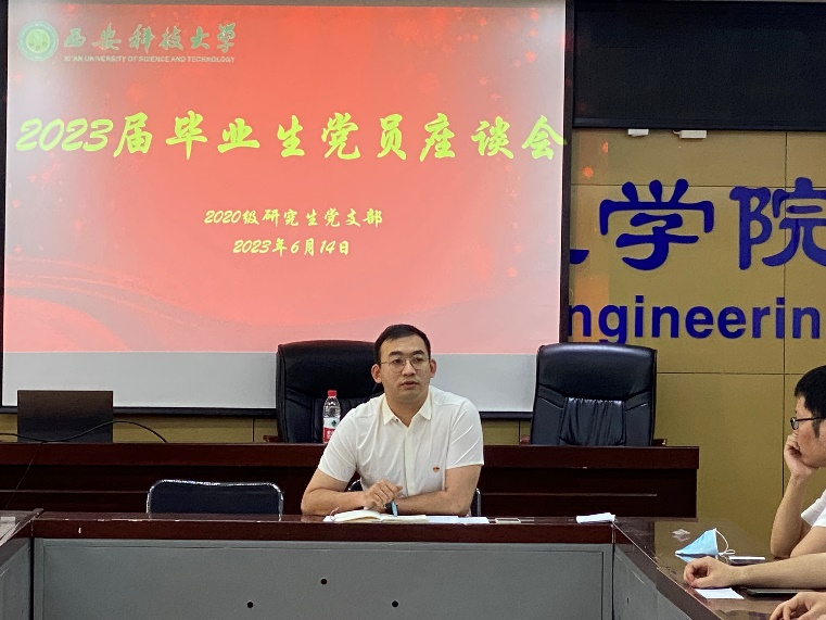 为加强对毕业生党员的教育引导,倾听毕业生党员的声音,6月14日中午,电控学院2020级研究生党支部在17教318会议室召开主题为“永葆初心,逐梦启航”的2023届毕业生党员座谈会。会议由毕业班辅导员李逸老师主持。