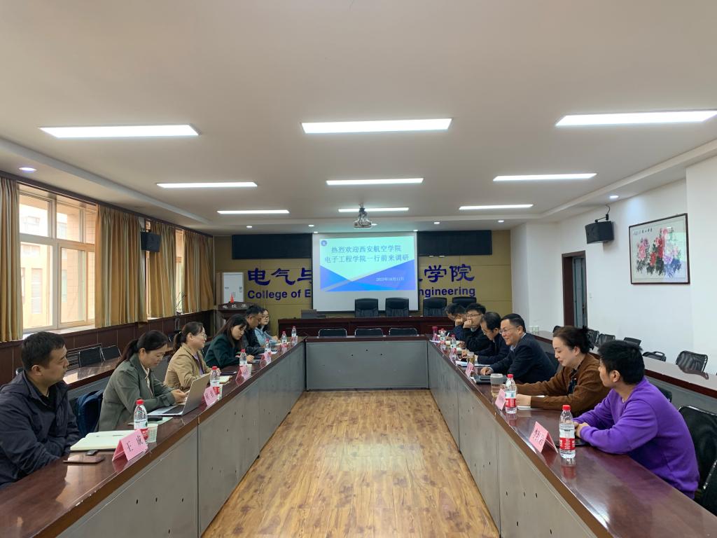 10月11日,西安航空学院电子工程学院院长杨亚萍一行6人来我院就工程教育专业认证工作进行调研交流。党委书记杨华、院长寇发荣、党委副书记马婧智闻、副院长潘红光、测控技术系主任昝宏洋参加了本次调研交流会议。