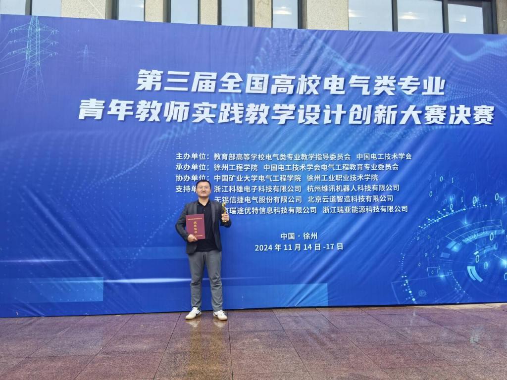 11月14日至17日,由教育部高等学校电气类专业教学指导委员会与中国电工技术学会联合组织的第三届全国高校电气类专业青年教师实践教学设计创新大赛决赛在江苏徐州举行。本次大赛吸引了浙江大学、东北大学、哈尔滨工业大学、beat365英国官方网站等国内100余所高校参与。186个参赛团队370多人分别参加了“创新设计竞赛”“综合应用竞赛”“电类基础竞赛”和“数字化课程开发竞赛”四个赛道7个赛项的比赛。电控学院副院长郝帅带队,青年教师高瑞、孙思雅、宋璐雯参加。在“电气自动化系统创新设计竞赛”赛项中,凭借“散货智算智慧码头一体化计重系统项目”获得全国二等奖。