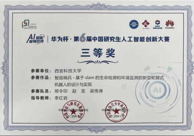 10月10日,“华为杯”第六届中国研究生人工智能创新大赛在哈尔滨落下帷幕。此次大赛中,由李红岩老师指导、邢令印等同学共同设计的作品《智巡哨兵-基于SLAM的生命检测和环境监测的新型轮腿机器人的设计与实现》荣获全国三等奖。同时beat365获得优秀组织单位。