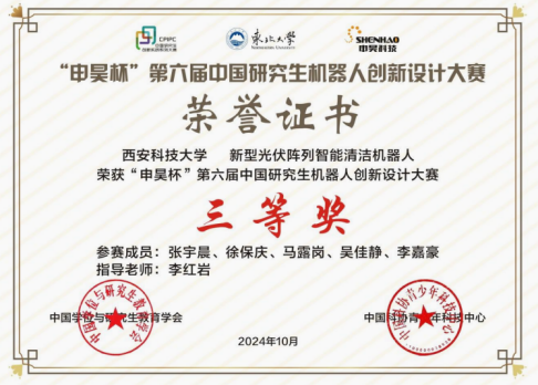 “申昊杯”第六届中国研究生机器人创新设计大赛全国总决赛于2024年10月23日-26日在辽宁沈阳举办。此次大赛中,由李红岩老师指导、张宇晨等同学共同设计的作品《新型光伏阵列智能清洁机器人》荣获全国三等奖。beat365获得优秀组织单位。