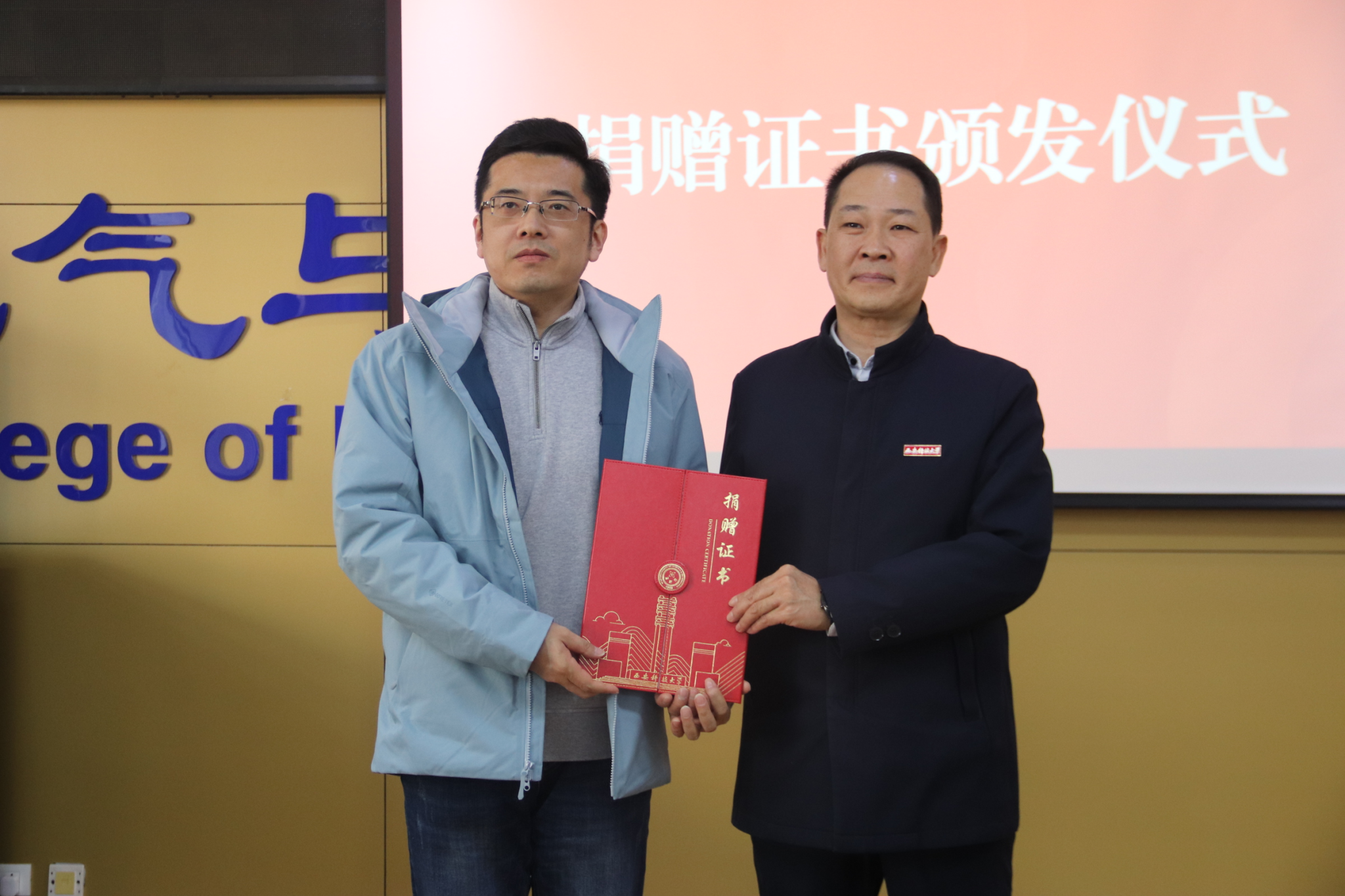 仪式上,校企双方代表共同签署了捐赠协议,曹明代表学校颁发了捐赠证书。捐赠仪式结束后举行了校企合作座谈会,与会人员围绕人才培养、学生就业以及科研合作等方面开展交流研讨。