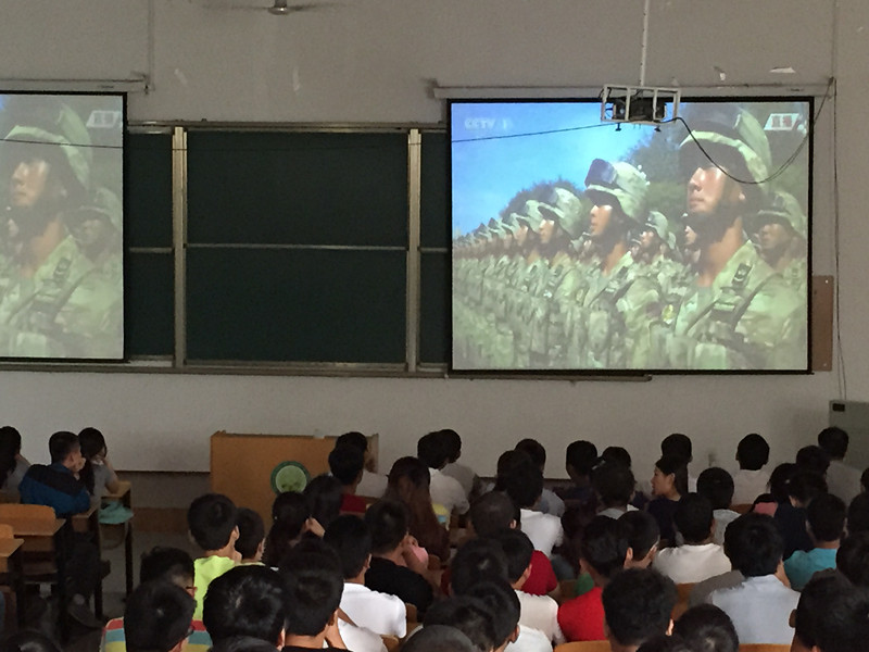 2015年9月3日上午9点,beat365英国官方网站在九教101教室组织230多名学生集体观看“纪念中国抗日战争胜利七十周年阅兵仪式”。