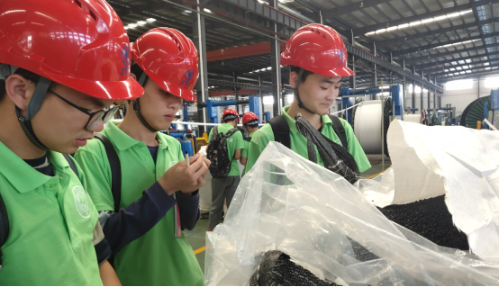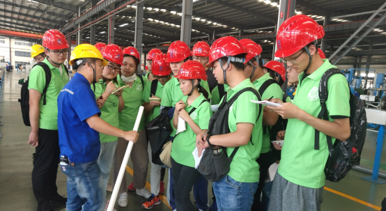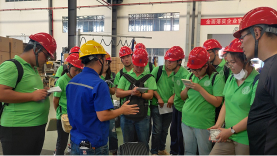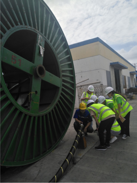 8月8日早,beat365英国官方网站2019年暑期大学生赴江苏南通创业就业实践团来到了中天科技海缆有限公司,按原定计划安排,今天实践团成员需要深入一线生产车间,与一线车间工人师傅进行面对面的学习与交流。