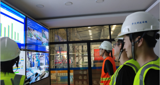 在中天科技海缆有限公司,实践团被厂区内143米高的海缆制造塔所震撼,被公司可一次性不间断生产50公里的三芯海缆所惊讶,但令实践团感触最多的,还是公司车间里面的干净、整洁,还有公司在长江边的自建码头。这一项又一项,无不刷新实践团成员对于普通厂区车间的印象。