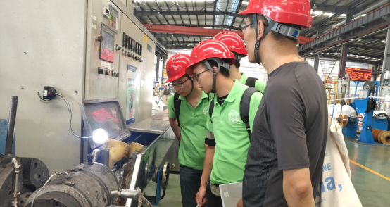当天下午,实践团分组进入不同车间,对各个工种、加工流程进行了解,并与车间师傅进行交流互动。实践团成员惊叹一台台大型设备的同时,也虚心地向师傅们学习、请教在实际操作中应该注意的问题,这才是真正的理论与实践结合!
