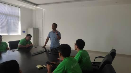 其次由王新智老师代表实践团对中天科技薛经理等细致的接待工作进行了感谢,并对本次研讨会上实践团各成员的发言提出了一些小要求:发言应该简洁、干练,时长应该控制在3分钟以内,主要介绍本次在中天科技集团各个分公司的收获。