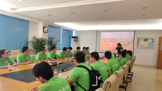 8月14日早,beat365英国官方网站2019年大学生赴江苏南通创业就业实践团进行到了本次活动的最后一天,在中天科技集团薛峰经理、罗天航经理和两位带队老师的组织下,实践团在中天智能装备有限公司进行了本次南通实践之旅的总结研讨会。