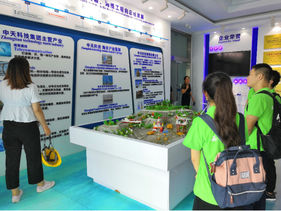 随后,在接待人员的带领下实践团来到中天科技集团的发展历程馆,在接待人员的讲解中,实践团了解到中天科技集团起步于1992年,起家光纤通信,得益于改革开放,现已形成信息通信、智能电网、新能源、海洋系统、精工装备、新材料等多元产业格局。现有68家子公司,14000多名员工。在海外58个国家和地区设立办事处,在印度、巴西、印尼、乌兹、摩洛哥设立5家工厂,产品出口140多个国家或地区,营销网络遍布“一带一路”沿线国家中的61个,覆盖率达95%以上。现已经跻身中国企业500强,国家重点高新技术产业、江苏省优秀民营企业,是南通市最大的制造企业。
