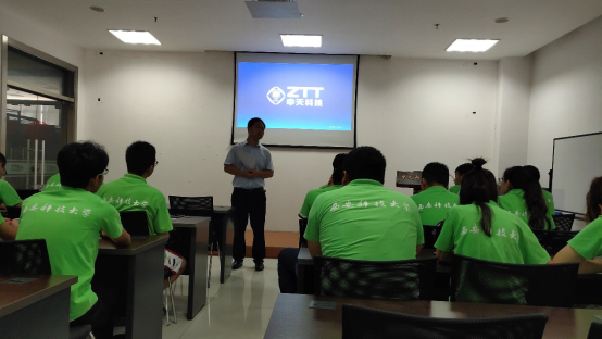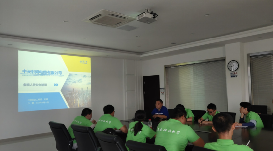 中天科技集团人事部经理薛峰给实践团讲解在实践过程中会用到的生产知识和安全问题。通过一些生产安全实例,对可能出些的问题进行详细介绍。实践团态度积极提问,基本了解了相关的规章制度,为以后的实习提供了安全保障。