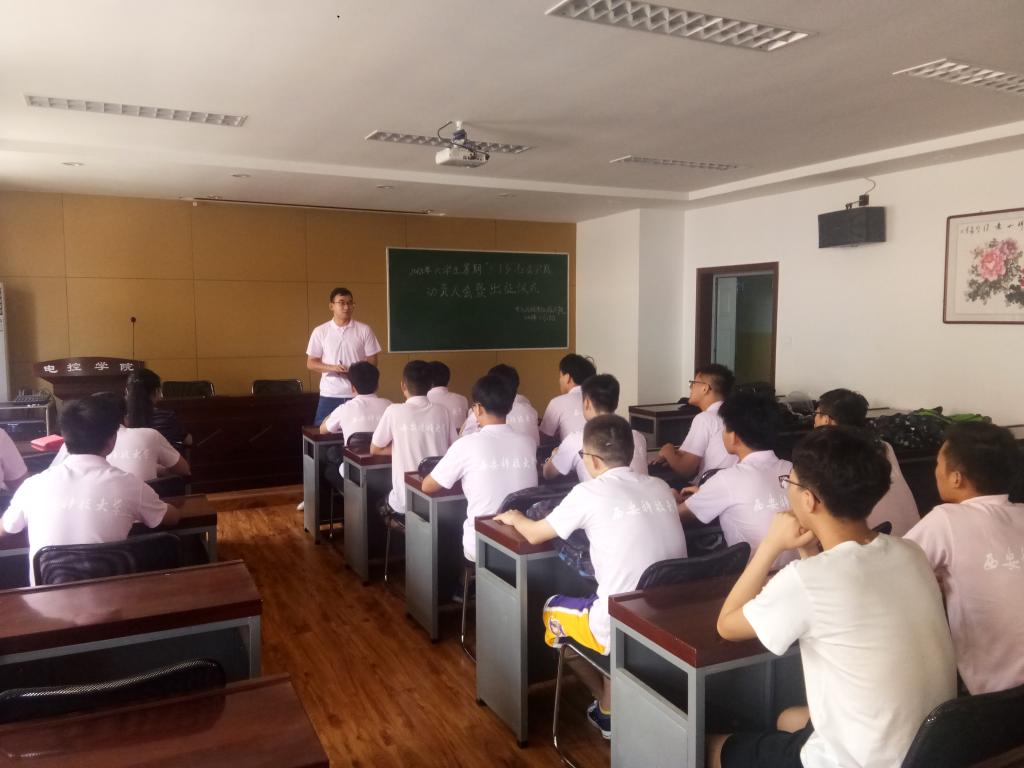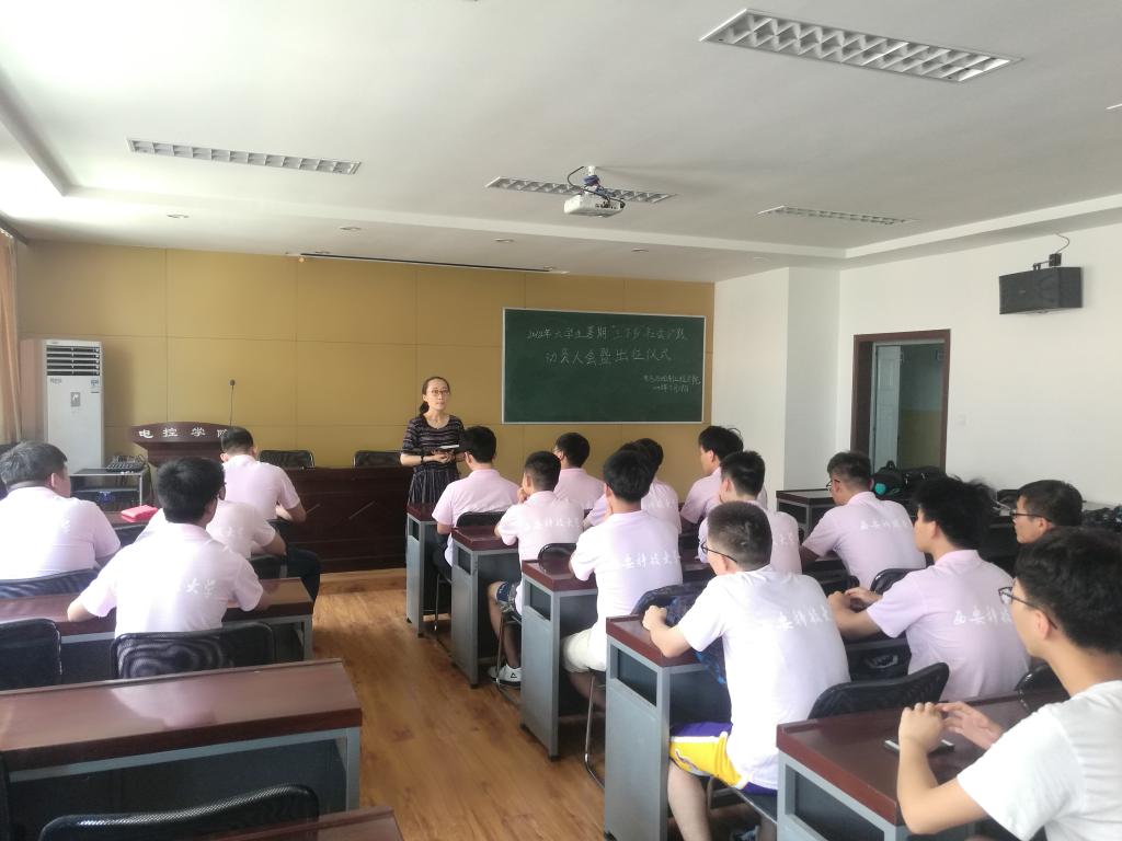 2018年7月19日中午,beat365英国官方网站2018年暑期大学生赴江苏南通创业就业实践团动员大会暨出征仪式在临潼校区17教举行。电控学院团委书记常瑜老师,实践团队的指导老师李逸老师以及社会实践团全体队员参加了本次动员大会。