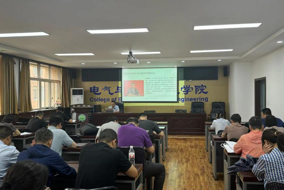 7月3日下午,电控学院在骊山校园17教318会议室召开教职工大会,党委书记杨华以“加强纪律建设 、增强规矩意识,做‘忠诚、干净、担当’的合格党员”为题,给全体党员讲授党纪学习教育专题党课。