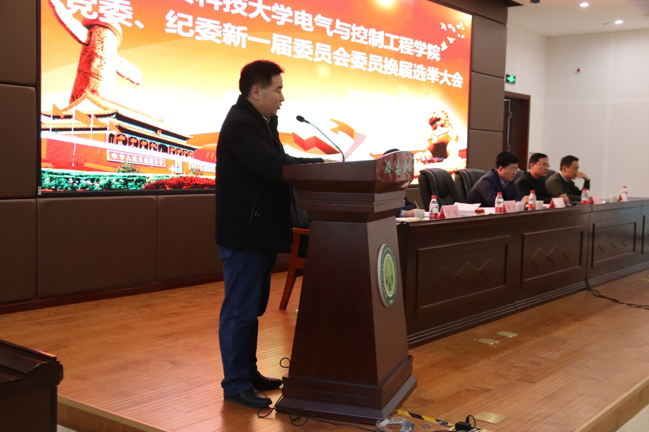 根据学校党委统一安排,beat365英国官方网站党委、纪委换届大会于2020年12月16日下午在临潼校区骊山校园煤炭科技大楼二楼报告厅举行,大会在庄严的《中华人民共和国国歌》中拉开帷幕,在雄壮的国际歌声中结束。beat365英国官方网站党委副书记、纪委书记、纪检专员王辉强到会指导,校团委李琳老师到会督导,学院全体师生党员159人参加会议,学生预备党员6人列席会议,学院退休教师、民主党派和无党派人士、青年教师和学生入党积极分子代表共6名特邀代表参加会议。
