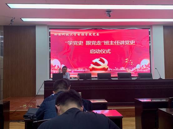 为深入学习贯彻习近平总书记在党史学习教育动员大会上的重要讲话精神,具体落实学校关于开展党史学习教育具体部署。2021年5月8日下午15:00,电控学院于雁塔校区图书馆二楼报告厅启动“学党史 跟党走”班主任讲党史活动。出席会议的有学院党委委员、各系部主任、各党支部书记和全体班主任和辅导员,会议由院党委书记杨华主持。