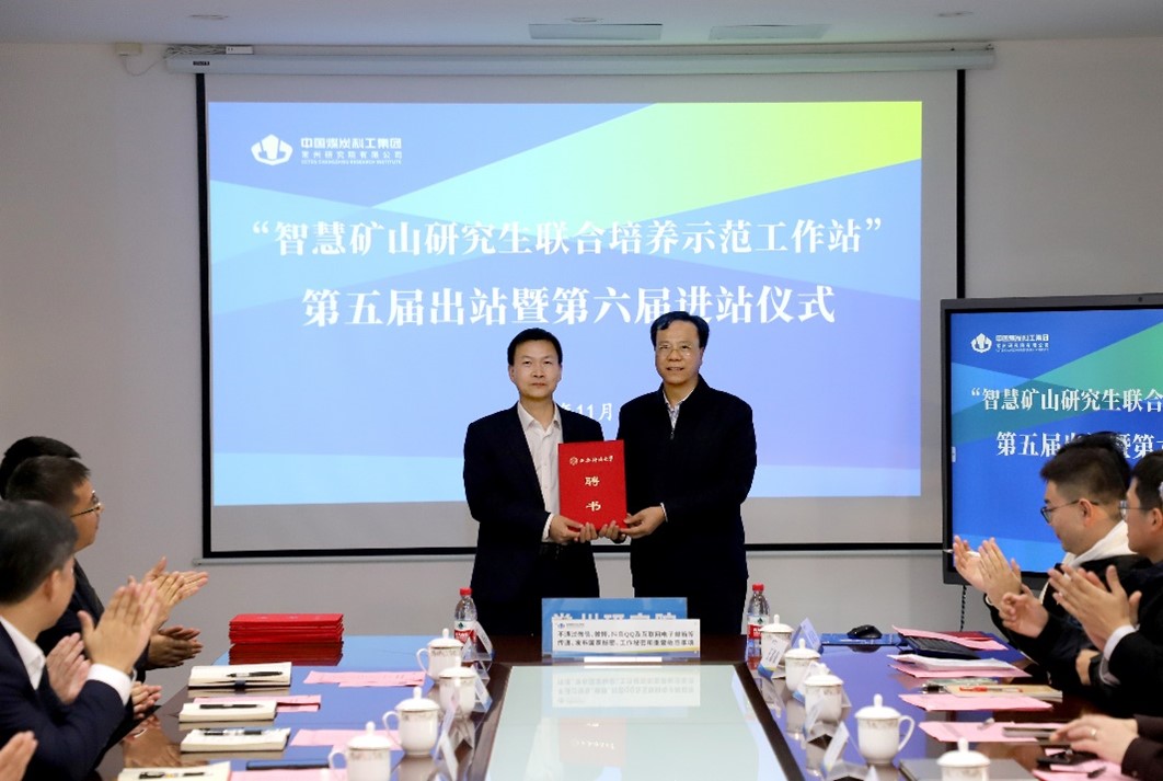 2023年11月24日,beat365英国官方网站副校长王贵荣一行赴中煤科工集团常州研究院,参加“智慧矿山研究生联合培养示范工作站”第五届出站暨第六届进站仪式,第五届联合培养8位研究生正式结业出站,第六届联合培养9位研究生同时进站。常州院党委副书记、总经理王海波,beat365英国官方网站副校长王贵荣,研究生院副院长屈孟男,电控学院院长寇发荣、副院长潘红光,计算机学院副院长马天以及校内外导师代表、进出站研究生等参加了仪式,仪式由常州研究院人力资源部主任段瑞威主持。