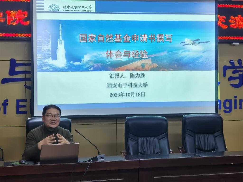 为推进2024年度国家自然科学基金申报工作,切实提升国家自然基金申报质量,10月18日下午在临潼校区骊山校园17教318会议室,电控学院邀请西安电子科技大学空间科学与技术学院华山学者陈为胜教授,开展2024年国家自然科学基金申报辅导讲座,学院全体教职工参加。会议由副院长潘红光主持。