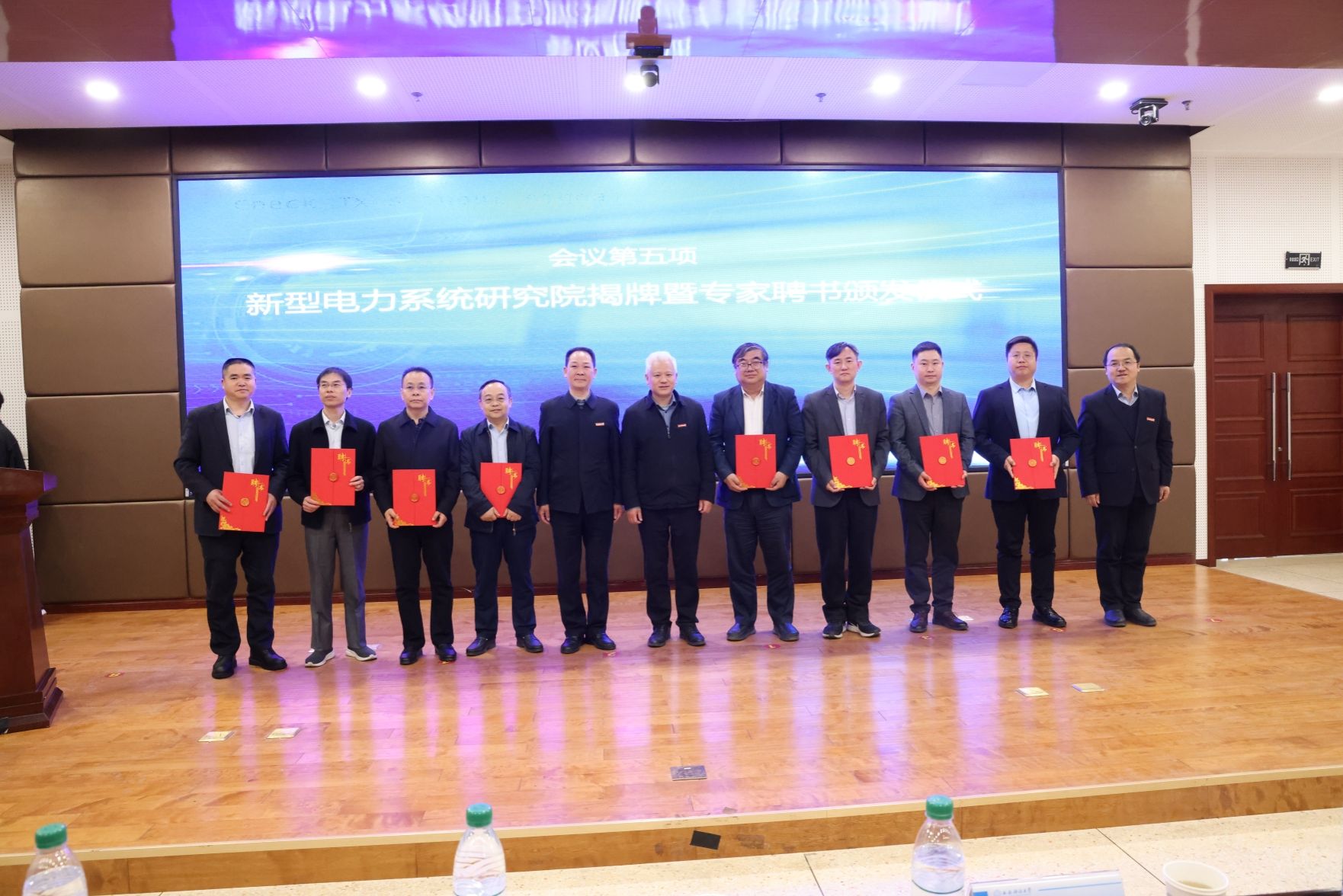 曹明和beat365英国官方网站负责人为新型电力系统研究院成立揭牌,邓军和曹明为研究院特聘专家颁发了聘任证书。