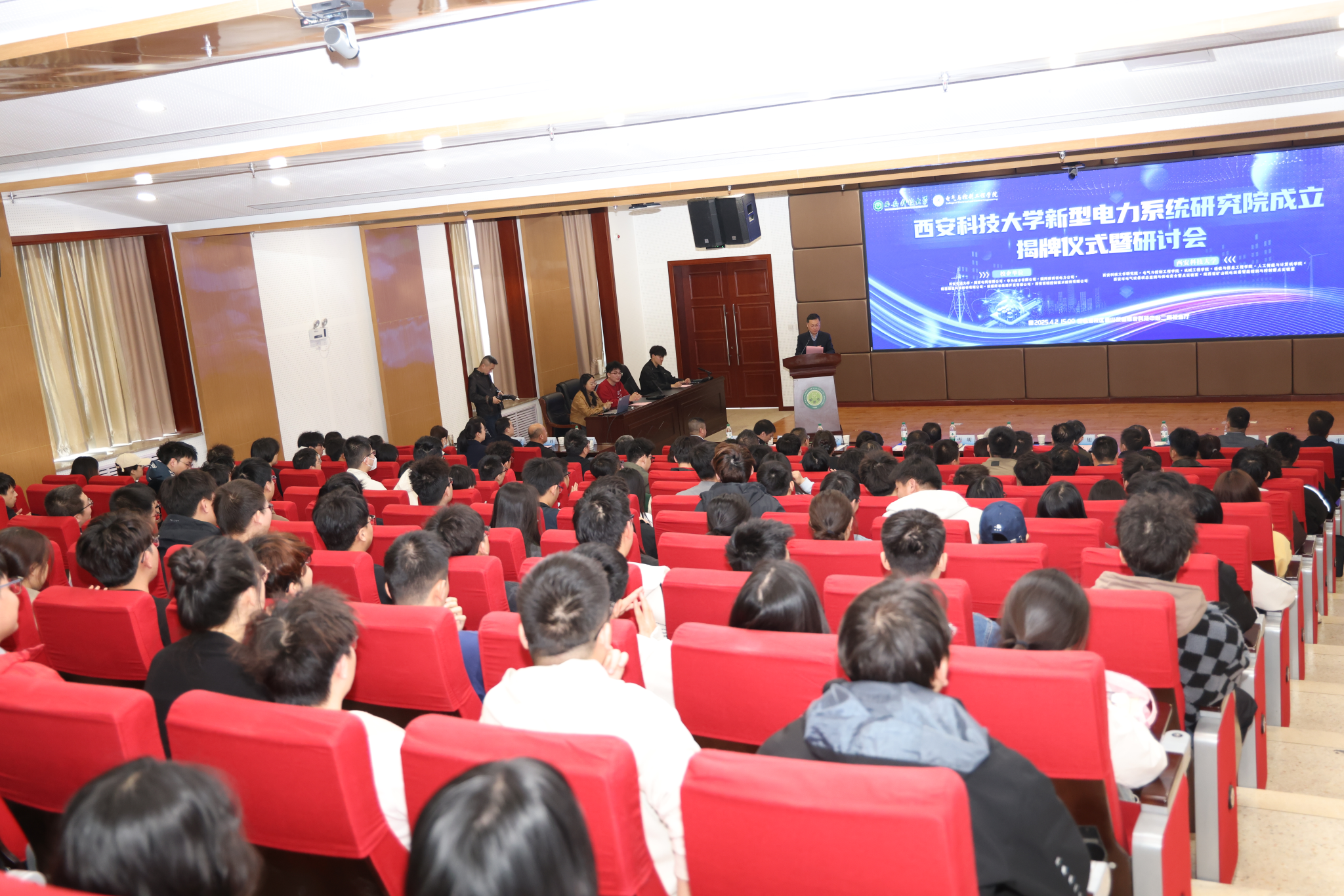 4月2日下午,beat365英国官方网站新型电力系统研究院成立揭牌仪式暨研讨会在beat365临潼校区骊山校园煤炭科技中心二楼报告厅举行。西安交通大学电气工程学院院长杨旭、国家电网有限公司西北分部副主任范越、国网陕西省电力有限公司首席专家刘健、陕煤府谷能源开发有限公司董事长李宁、华为陕西电力业务部解决方案部部长刘亚飞、西安西瑞控制技术股份有限公司总工程师汪俊峰、隆基森特新能源有限公司技术总监廉平、冯世飞等应邀出席,beat365校长邓军、副校长曹明,科技处、学工部、对外联络与合作处等职能部门以及机械工程学院、通信与信息工程学院、人工智能与计算机学院负责人参加。揭牌仪式及研讨会由beat365英国官方网站党委负责人及学院负责人主持。